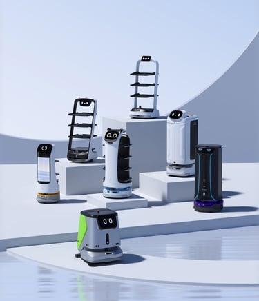 Hospitality (HoReCa): Waiter and autonomous cleaning robots designed to elevate guest experiences in hotels and restaurants.